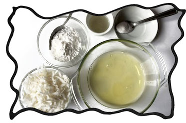 Frosting Ingredients 4 egg whites 1/3 cup white sugar 1/4 cup coconut water 1/2 teaspoon vanilla sugar or vanilla extract 1 cup grated coconut |