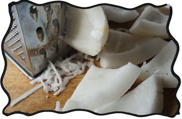 First grate the coconut if you haven't done so yet. You will need 3 cups grated coconut for this recipe, including the frosting. It's approximately 2 middle-size coconuts. To crack a coconut you can preheat it in the oven for 15-20 minutes. The shell will either crack itself or will become easier to crack. There are many videos on youtube how to do it. |