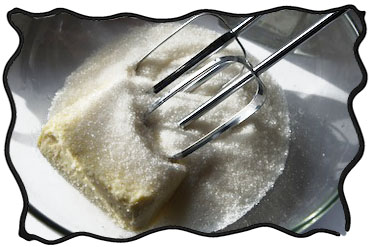 Mix the softened butter and sugar until even and fluffy. Add vanilla sugar and salt. |